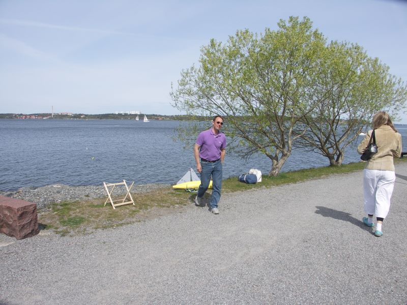 070505 IOM Nacka strand Demo -- Peter W på språng. Banan skymtar ute i vattnet